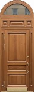 Утепленная термодверь с арочной остекленной вставкой, отбойником и отделкой массивом КД-1324