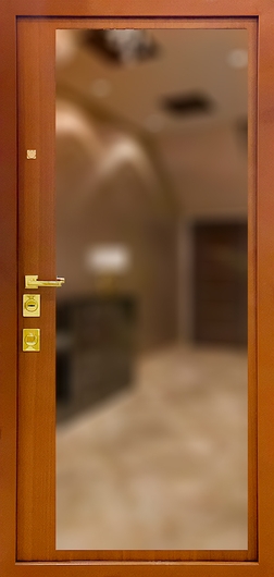 Стальная дверь с наборным МДФ шпон и зеркалом КД-654