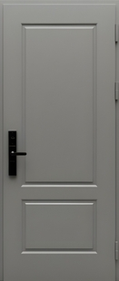 Стальная термодверь с серыми окрашенными панелями МДФ RAL с электронным замком КД-1366
