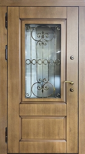 Входная «тёплая» термодверь со стеклопакетом, ковкой и шпонированными плитами МДФ КД-1286